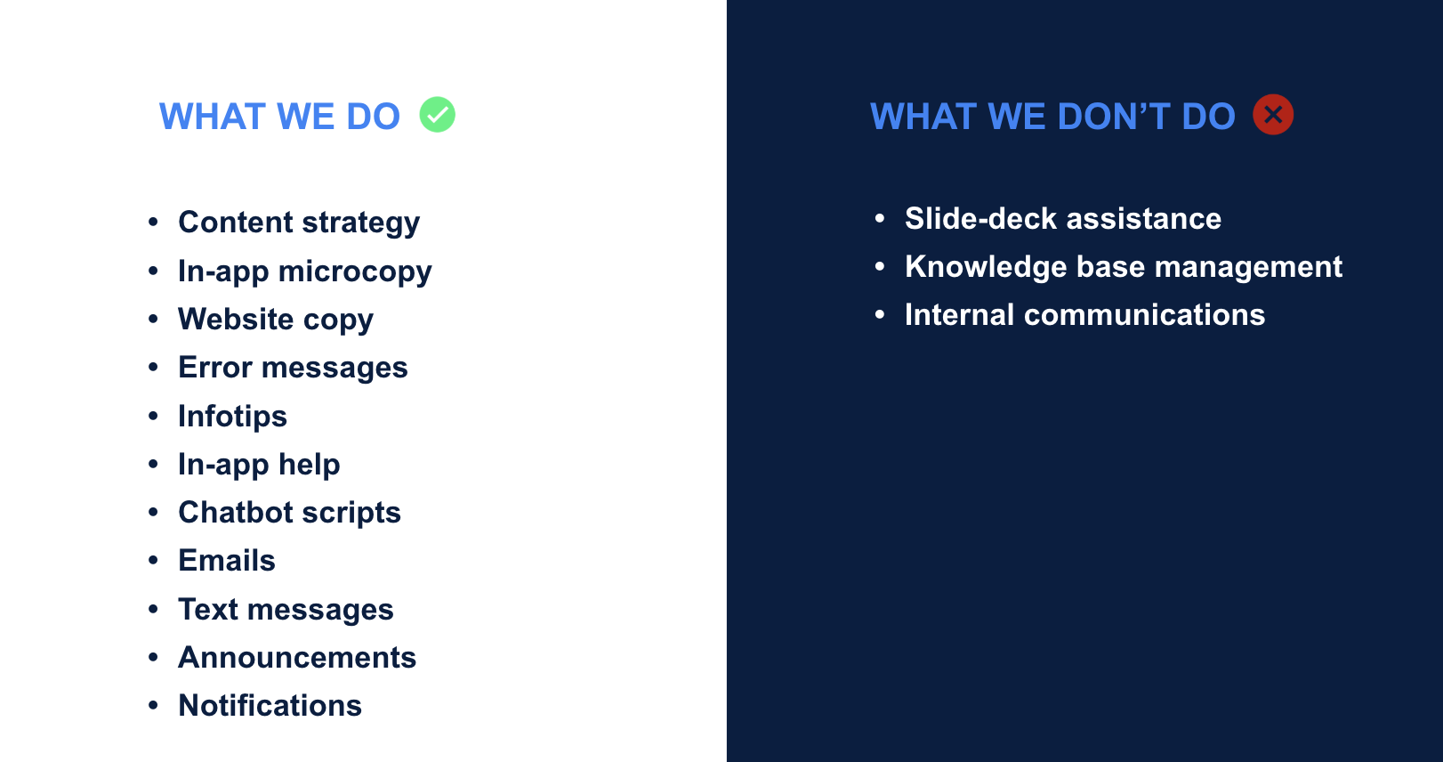 I made content design the connective tissue across content teams. I brought marketing, technical writing, and other content disciplines together for biweekly alignment sessions where my team would demo new UX features before they went live. These sessions gave every content team dedicated context on what was launching and created the space to align on strategic narratives together.